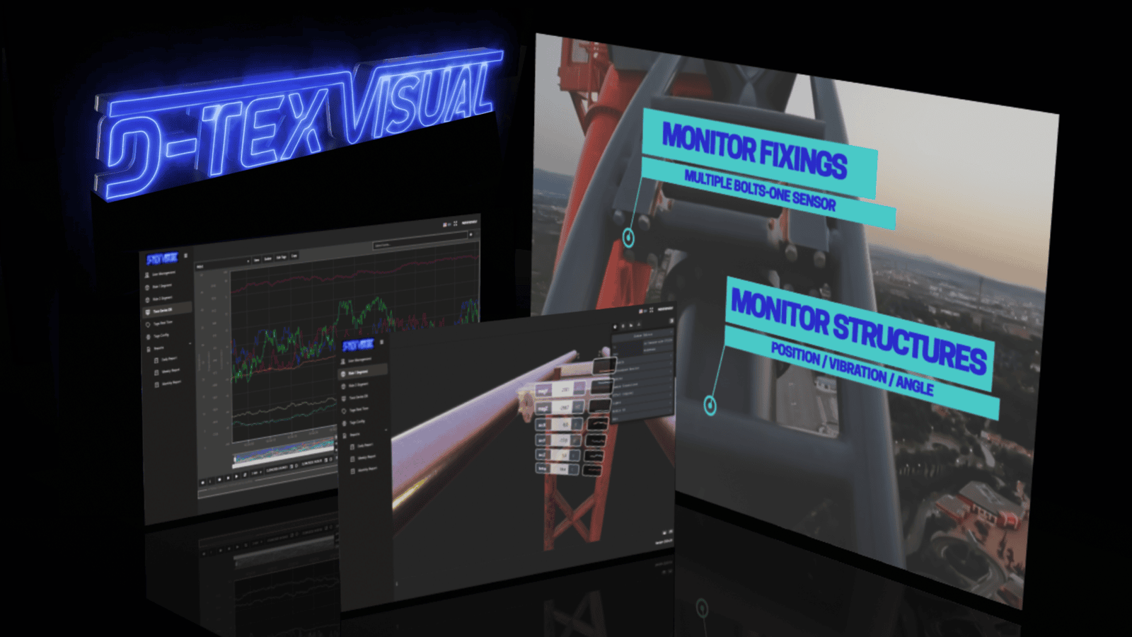 Bolt-iT is the first of a range of detection products by D-Tex Visual Ltd for conditional based monitoring (CBM). The sensor can be fitted to existing fixings, joints and infrastructure without the need for disassembling, meaning that the integrity of the original assembly is maintained. Once installed, our technology is capable of detecting nut or bolt rotation, bend, shear and stretch as well as change in vibration levels or triple axis pitch and roll of any asset, making it perfect for detecting structure movement caused by geological or other natural events. Initially aimed at theme park applications, the system is now branching out into large scale construction projects, oil & gas and other sectors